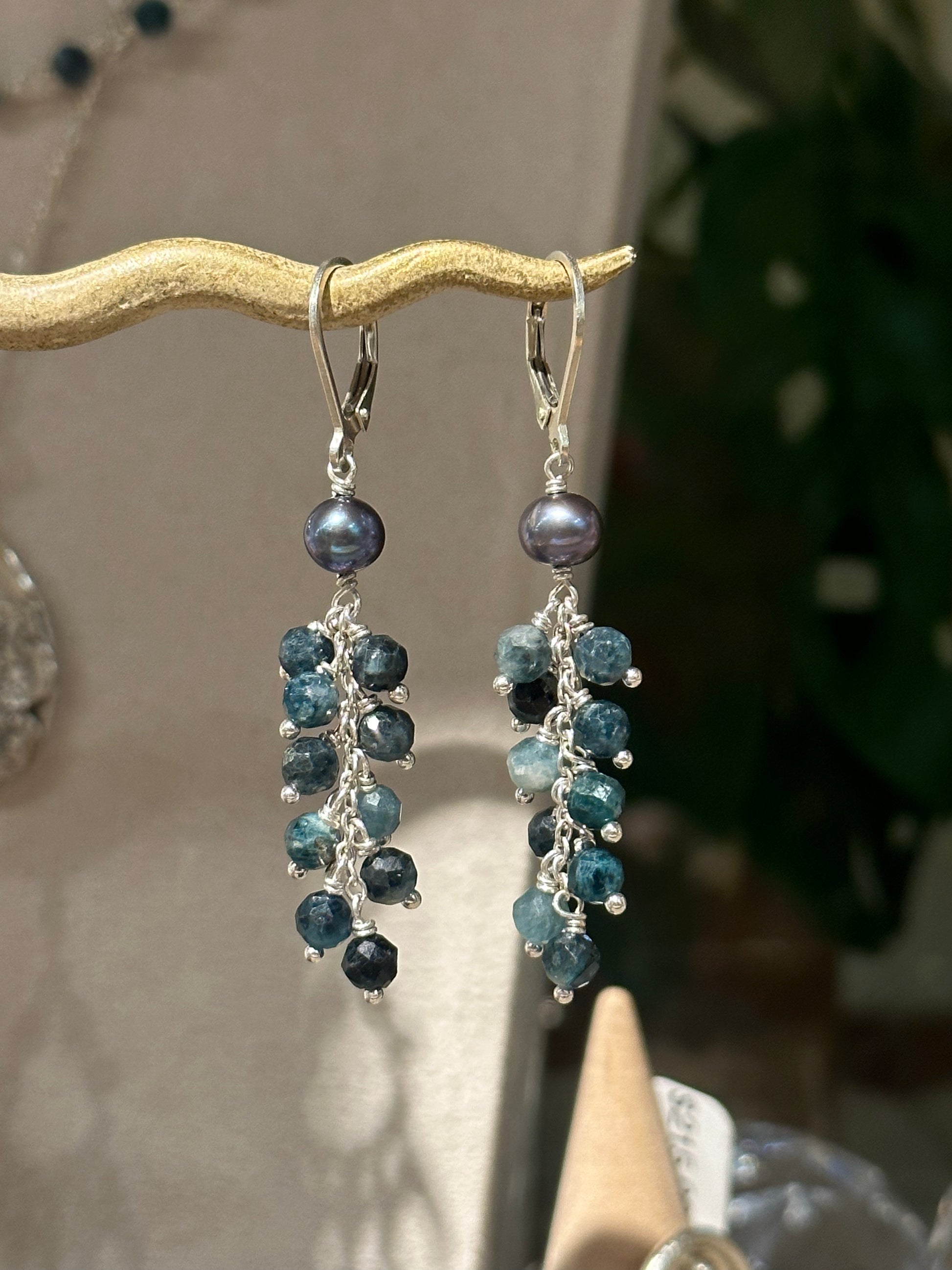 Blue Tourmaline Cluster Earrings